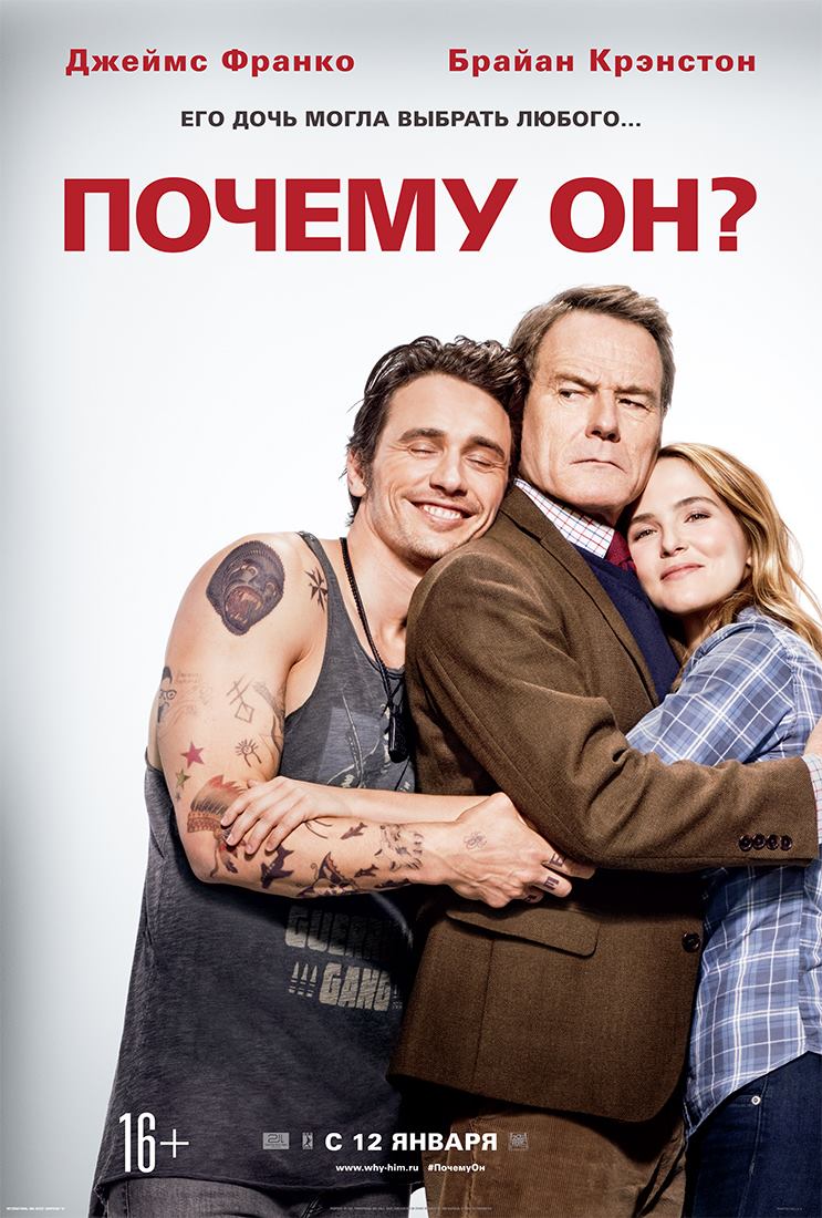Информация о фильме Название: » Почему он? Оригинальное название: » Why Him? Жанр: » комедия Продолжительность: » 01:51:12 Перевод: » Дублированный (Лицензия) Страна: » США, Камбоджа Год выхода: » 2016 Режиссер: »Джон Гамбург В ролях: » Брайан Крэнстон, Джеймс Франко, Зои Дойч, Меган Маллалли, Гриффин Глюк, Кигэн-Майкл Ки, Седрик «Развлекатель», Зак Перлман, Адам Дивайн, Боб Стефенсон